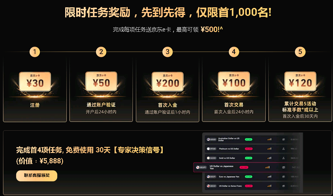 累计交易5活动标准手数*或者以上,首次入金后30天内¥120